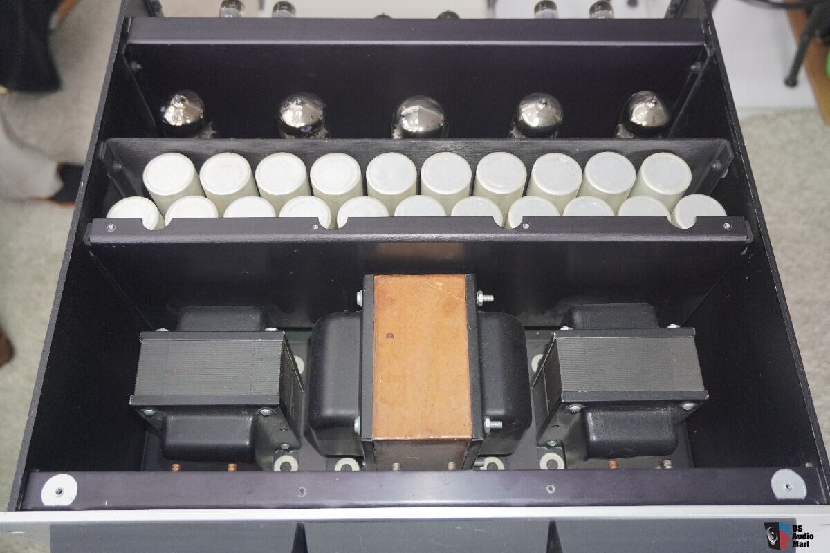 Some of its features include near military components and construction with unsurpassed accessability for maintenance. Front panel switches and meters provide operating convenience. Three built-in fans provide forced air cooling of the output stage for extended tube and component life. A high energy, well regulated power supply with our balanced and cross-coupled (patented) circuitry is employed together with other Audio Research technology to provide an incredibly stable amplifier capable of sorting out and properly defining the most subtle nuances of sound even with the most reactive of modern speaker loads.