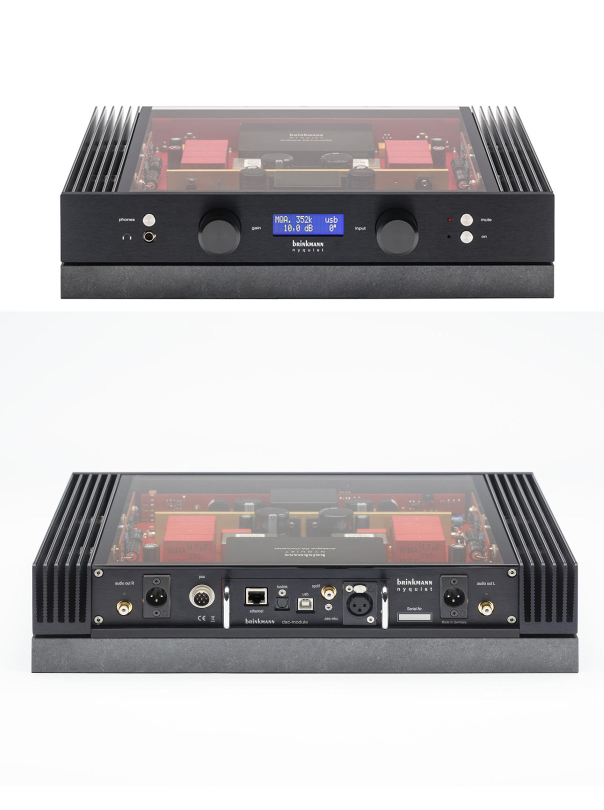 In his white paper, Brinkmann writes that while he tested several DSD DAC chipsets, none compared to the sound of a discrete DSD DAC. Non–signal-degrading relays automatically switch between PCM and DSD.